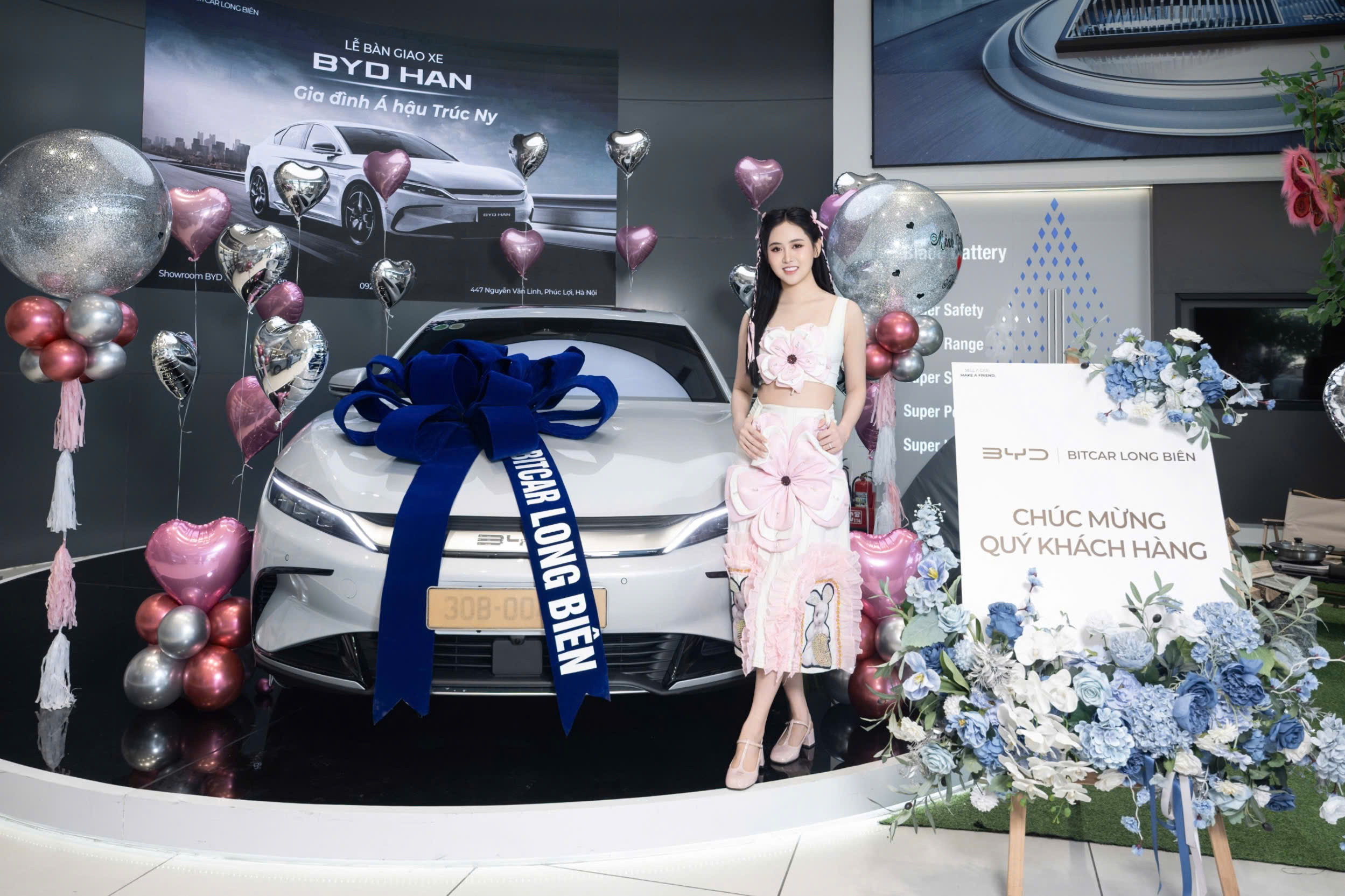 Sau một lần xem xe và lái thử, Á hậu Trúc Ny đã quyết định chọn BYD Han nhân dịp Trung Thu dành tặng ông bà nội để tiện đưa đón cháu đi học hằng ngày. Theo cô chia sẻ: “Chúng tôi muốn con được đến trường trong điều kiện an toàn và tiện nghi nhất”.